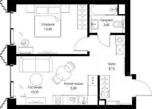 В ЖК Сет продается 1-комнатная квартира площадью 40.30 м², расположенная в корпусе 2, на 19 этаже 59 этажного дома.