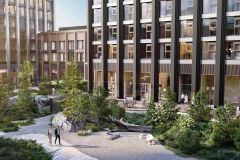 Двор разделен на 4 зоны разных эмоций и действий, которые пересечены и соединены веерными прогулочными маршрутами: