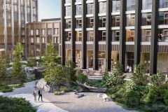 Двор разделен на 4 зоны разных эмоций и действий, которые пересечены и соединены веерными прогулочными маршрутами: