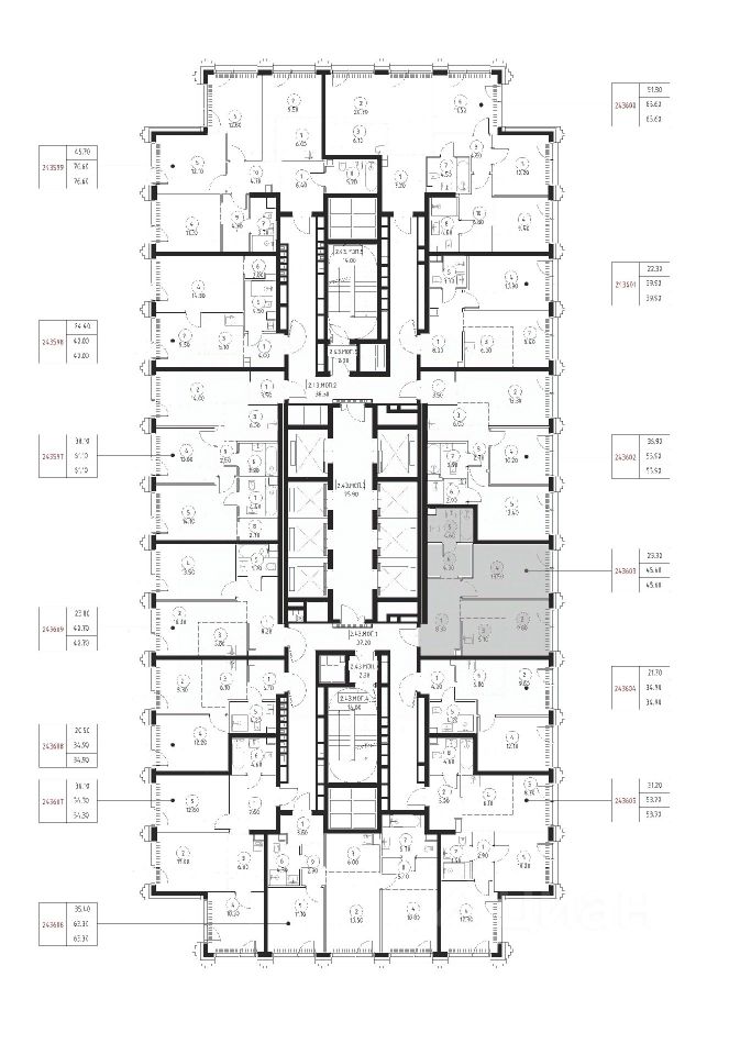 В ЖК Сет продается 1-комнатная квартира площадью 45.90 м², расположенная в корпусе 2, на 43 этаже 59 этажного дома.