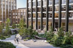 Двор разделен на 4 зоны разных эмоций и действий, которые пересечены и соединены веерными прогулочными маршрутами:
