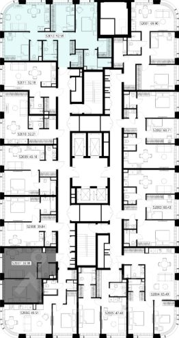 Продаётся 1-комнатная квартира общей площадью 38.98 м² без отделки в ЖК Веер на 20-м этаже 38 этажного дома.