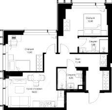 Продаётся 2-комнатная квартира общей площадью 59 м² с предчистовой отделкой в ЖК Веер на 40-м этаже 59 этажного дома.