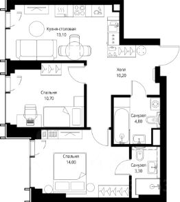 Продаётся 2-комнатная квартира общей площадью 56.10 м² с предчистовой отделкой в ЖК Веер на 28-м этаже 59 этажного дома.