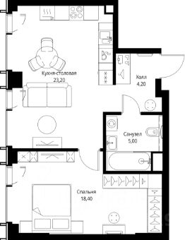 Продаётся 1-комнатная квартира общей площадью 50.80 м² с предчистовой отделкой в ЖК Веер на 52-м этаже 59 этажного дома.