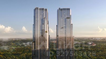 Продаётся 1-комнатная квартира общей площадью 44.80 м² с предчистовой отделкой в ЖК Веер на 19-м этаже 59 этажного дома.