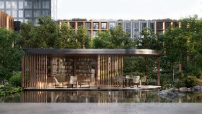 • "Центральная площадь" устроена у водного оазиса живописного пруда.