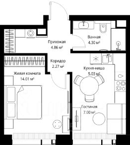 Продаётся 1-комнатная квартира общей площадью 37.47 м² без отделки в ЖК Веер на 17-м этаже 25 этажного дома.