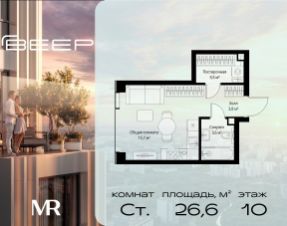 Продаётся студия общей площадью 26.60 м² с предчистовой отделкой в ЖК Веер на 10-м этаже 22 этажного дома.
