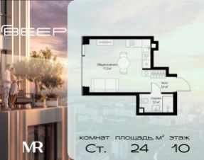 Продаётся студия общей площадью 24 м² с предчистовой отделкой в ЖК Веер на 10-м этаже 22 этажного дома.