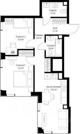 Продаётся 2-комнатная квартира общей площадью 56.30 м² с предчистовой отделкой в ЖК Веер на 19-м этаже 22 этажного дома.