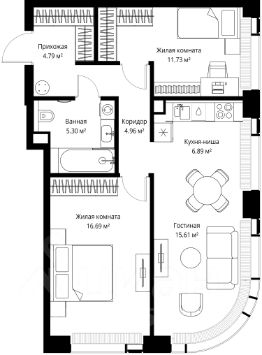 Продаётся 2-комнатная квартира общей площадью 65.97 м² без отделки в ЖК Веер на 29-м этаже 35 этажного дома.