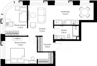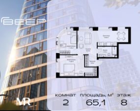 Продаётся 2-комнатная квартира общей площадью 65.11 м² без отделки в ЖК Веер на 8-м этаже 35 этажного дома.
