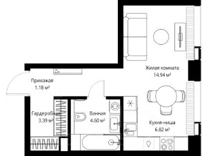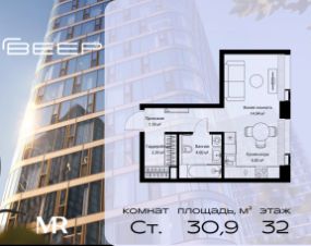 Продаётся студия общей площадью 30.93 м² без отделки в ЖК Веер на 32-м этаже 35 этажного дома.