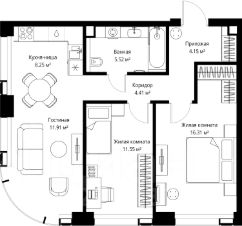 Продаётся 2-комнатная квартира общей площадью 62.10 м² без отделки в ЖК Веер на 23-м этаже 35 этажного дома.
