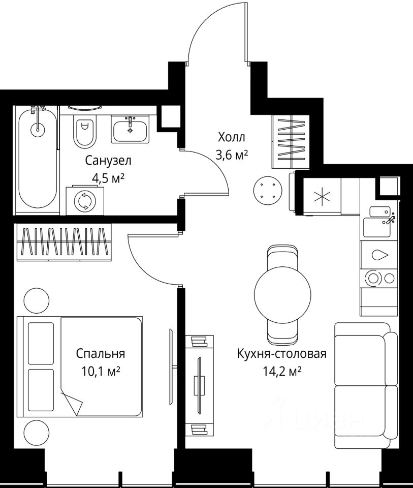 Продаётся 1-комнатная квартира общей площадью 32.40 м² с предчистовой отделкой в ЖК Веер на 22-м этаже 46 этажного дома.
