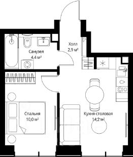 Продаётся 1-комнатная квартира общей площадью 31.50 м² с предчистовой отделкой в ЖК Веер на 40-м этаже 46 этажного дома.