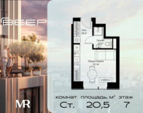 Продаётся студия общей площадью 20.50 м² с предчистовой отделкой в ЖК Веер на 7-м этаже 46 этажного дома.