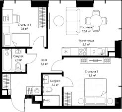 Продаётся 2-комнатная квартира общей площадью 56.40 м² с предчистовой отделкой в ЖК Веер на 31-м этаже 46 этажного дома.