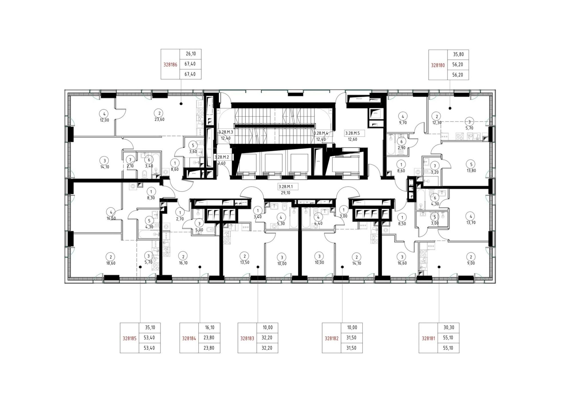 Первая очередь ВЕЕР.1 — это 5 разновысотных башен, объединённых стилобатом с благоустроенным закрытым двором без машин. Авторская архитектура от бюро СПИЧ, известного по таким знаковым проектам как новое здание Третьяковской галереи в Москве и Музей архитектурного рисунка в Берлине, создаёт динамичный силуэт квартала. Более 200 типов продуманных планировок: квартиры с видовыми террасами, мастер-спальнями, панорамными окнами и даже смотровой площадкой на крыше. Малоэтажные уютные секции с 25 квартирами на этаже и с эксплуатируемой кровлей подойдут тем, кто ищет уединения. Предчистовая отделка white box по стандартам MR обеспечивает быстрое заселение и тишину в корпусах.