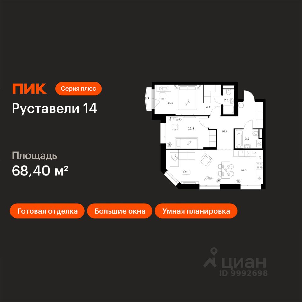 Продаётся 2-комн. квартира площадью 68,4 кв.м на 12 этаже 21 этажного дома (Корпус 3.5, Секция 1) проекта ПИК Руставели 14. Светлый просторный подъезд на уровне земли, функциональная планировка, большие окна, c отделкой. "Руставели 14" — квартал "Серии плюс" с уникальной архитектурой в историческом районе Москвы Останкино. Всего в трёх минутах пешком — станция метро "Бутырская", а до ТТК можно доехать всего за 5 минут на машине. В проекте можно купить квартиру с готовой отделкой и видом на Останкинскую башню. У жителей будет всё для комфортной жизни: зелёные дворы-парки, прогулочные аллеи, свой детский сад и образовательный центр рядом с домом. В безопасных подъездах можно будет оставить велосипед или коляску. На первых этажах откроются кафе, магазины, пекарни и другие сервисы — за кофе и завтраком можно будет просто спуститься на лифте. Район вокруг "Руставели 14" хорошо развит: здесь есть школы, детские сады и поликлиника. Рядом несколько парков, откуда открываются виды на Останкинскую башню, и арт-пространства: дизайн-завода Флакон и "Хлебозавод 9". Идти до них всего 15 минут. Артикул 1040208 (Застройщик ООО "Специализированный застройщик ПЛАМ")