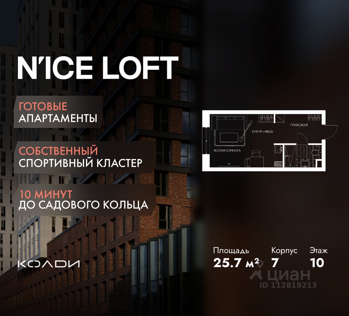 N'ICE LOFT — готовый комплекс апартаментов с собственным спортивным кластером в 10 минутах от Садового кольца. Комплекс апартаментов бизнес-класса N'ICE LOFT, девелопером которого выступила компания КОЛДИ, представляет собой знаковое жилое пространство, на территории которого органично объединены высококачественная инфраструктура для комфортной жизни и полноценный спортивный кластер. N'ICE LOFT — новая спортивная доминанта Москвы, где для жителей и их гостей предусмотрено более 20 000 м², созданных специально для тренировок, игр, восстановления и оздоровления. Автором выразительной городской эстетики выступило архитектурное бюро APEX. Строгие силуэты фасадов эффектно возвышаются над благоустроенным окружением, а световые блики элегантно подчеркивают структурное фасадное остекление. Сердце проекта — физкультурно-оздоровительный комплекс с двумя ледовыми аренами формата НХЛ — профессиональными площадками. Помимо спортивных арен на территории N'ICE LOFT предусмотрено пять многофункциональных залов, где каждый сможет реализовать свой спортивный потенциал. Для тех, кто предпочитает тренировки и прогулки на свежем воздухе, создан спортивный парк общей площадью 6 300 м² с воркаут-зонами, игровыми площадками и уединенными пространствами для отдыха. Также внутри квартала проложена километровая беговая дорожка, которая доступна к использованию в любое время года. Особое внимание архитекторы уделили входной группе — просторное авторское лобби с потолками до 9 метров с использованием природных элементов. Резиденты и их гости смогут насладиться садом, не покидая пределы дома. Территория апарт-комплекса N'ICE LOFT соответствует современным стандартам безопасности: инновационная система видеонаблюдения, охраняемый подземный паркинг и круглосуточный консьерж-сервис. Преимущества N'ICE LOFT: Готовый комплекс с собственным спортивным кластером в 10 минутах от Садового кольца Современная архитектура с выразительными контрастными фасадами Спортивная инфраструктура 20 000 м²: 2 ледовые арены формата НХЛ, 5 многофункциональных залов, беговая дорожка 1 км Спортивный парк 6 300 м² с зонами для разных видов активностей Более 10 видов спорта в одном кластере Апартаменты с панорамными окнами и потолками до 5 метров Видовые лоты с террасами и патио Авторское лобби с потолками до 9 метров Консьерж-сервис 24/7 Охраняемый подземный паркинг