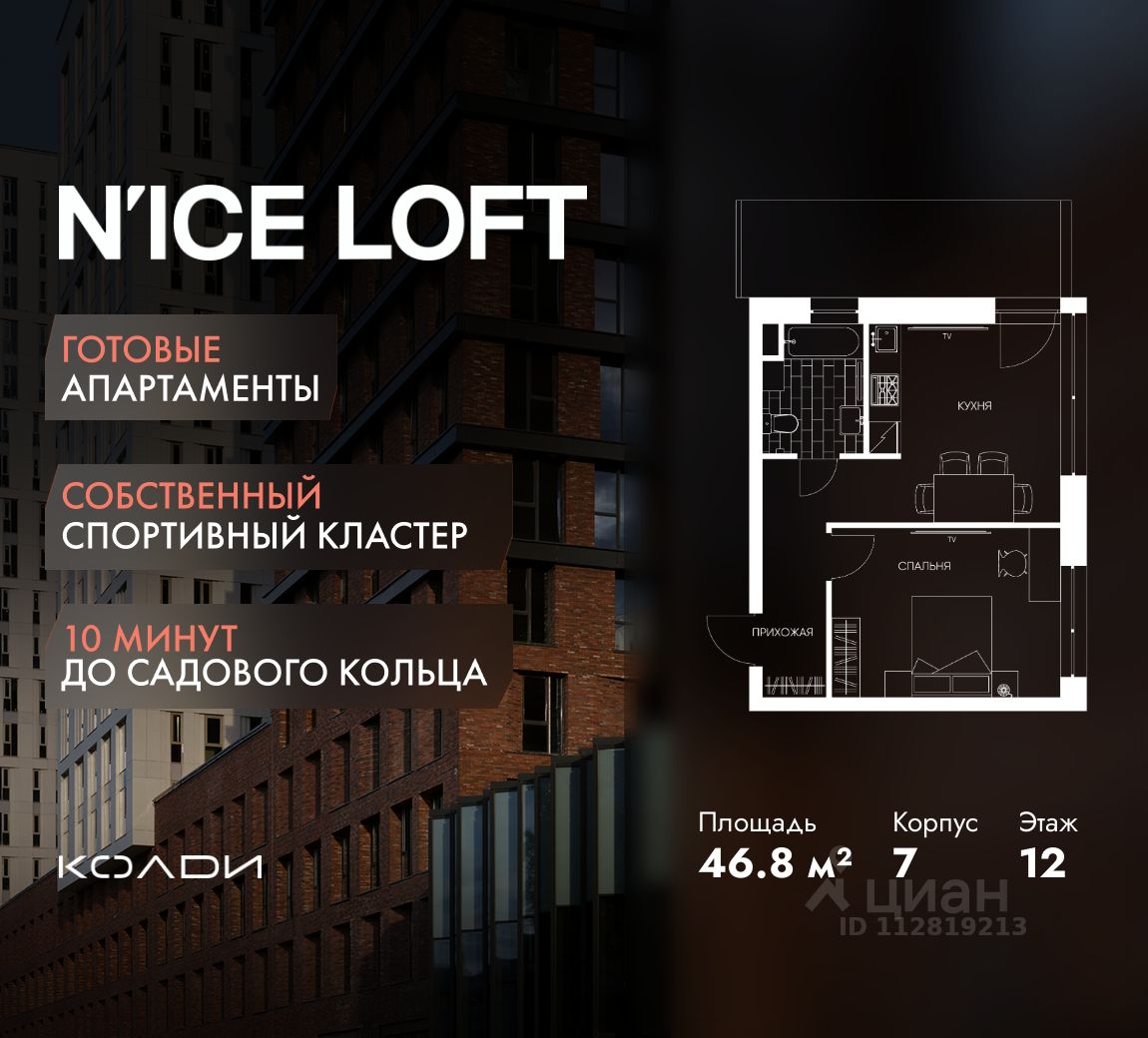 N'ICE LOFT — готовый комплекс апартаментов с собственным спортивным кластером в 10 минутах от Садового кольца. Комплекс апартаментов бизнес-класса N'ICE LOFT, девелопером которого выступила компания КОЛДИ, представляет собой знаковое жилое пространство, на территории которого органично объединены высококачественная инфраструктура для комфортной жизни и полноценный спортивный кластер. N'ICE LOFT — новая спортивная доминанта Москвы, где для жителей и их гостей предусмотрено более 20 000 м², созданных специально для тренировок, игр, восстановления и оздоровления. Автором выразительной городской эстетики выступило архитектурное бюро APEX. Строгие силуэты фасадов эффектно возвышаются над благоустроенным окружением, а световые блики элегантно подчеркивают структурное фасадное остекление. Сердце проекта — физкультурно-оздоровительный комплекс с двумя ледовыми аренами формата НХЛ — профессиональными площадками. Помимо спортивных арен на территории N'ICE LOFT предусмотрено пять многофункциональных залов, где каждый сможет реализовать свой спортивный потенциал. Для тех, кто предпочитает тренировки и прогулки на свежем воздухе, создан спортивный парк общей площадью 6 300 м² с воркаут-зонами, игровыми площадками и уединенными пространствами для отдыха. Также внутри квартала проложена километровая беговая дорожка, которая доступна к использованию в любое время года. Особое внимание архитекторы уделили входной группе — просторное авторское лобби с потолками до 9 метров с использованием природных элементов. Резиденты и их гости смогут насладиться садом, не покидая пределы дома. Территория апарт-комплекса N'ICE LOFT соответствует современным стандартам безопасности: инновационная система видеонаблюдения, охраняемый подземный паркинг и круглосуточный консьерж-сервис. Преимущества N'ICE LOFT: Готовый комплекс с собственным спортивным кластером в 10 минутах от Садового кольца Современная архитектура с выразительными контрастными фасадами Спортивная инфраструктура 20 000 м²: 2 ледовые арены формата НХЛ, 5 многофункциональных залов, беговая дорожка 1 км Спортивный парк 6 300 м² с зонами для разных видов активностей Более 10 видов спорта в одном кластере Апартаменты с панорамными окнами и потолками до 5 метров Видовые лоты с террасами и патио Авторское лобби с потолками до 9 метров Консьерж-сервис 24/7 Охраняемый подземный паркинг