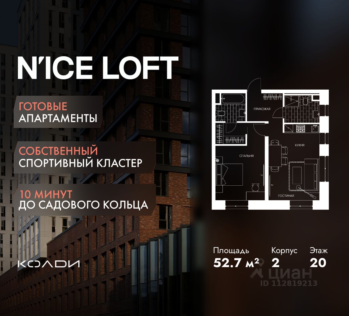 N'ICE LOFT — готовый комплекс апартаментов с собственным спортивным кластером в 10 минутах от Садового кольца. Комплекс апартаментов бизнес-класса N'ICE LOFT, девелопером которого выступила компания КОЛДИ, представляет собой знаковое жилое пространство, на территории которого органично объединены высококачественная инфраструктура для комфортной жизни и полноценный спортивный кластер. N'ICE LOFT — новая спортивная доминанта Москвы, где для жителей и их гостей предусмотрено более 20 000 м², созданных специально для тренировок, игр, восстановления и оздоровления. Автором выразительной городской эстетики выступило архитектурное бюро APEX. Строгие силуэты фасадов эффектно возвышаются над благоустроенным окружением, а световые блики элегантно подчеркивают структурное фасадное остекление. Сердце проекта — физкультурно-оздоровительный комплекс с двумя ледовыми аренами формата НХЛ — профессиональными площадками. Помимо спортивных арен на территории N'ICE LOFT предусмотрено пять многофункциональных залов, где каждый сможет реализовать свой спортивный потенциал. Для тех, кто предпочитает тренировки и прогулки на свежем воздухе, создан спортивный парк общей площадью 6 300 м² с воркаут-зонами, игровыми площадками и уединенными пространствами для отдыха. Также внутри квартала проложена километровая беговая дорожка, которая доступна к использованию в любое время года. Особое внимание архитекторы уделили входной группе — просторное авторское лобби с потолками до 9 метров с использованием природных элементов. Резиденты и их гости смогут насладиться садом, не покидая пределы дома. Территория апарт-комплекса N'ICE LOFT соответствует современным стандартам безопасности: инновационная система видеонаблюдения, охраняемый подземный паркинг и круглосуточный консьерж-сервис. Преимущества N'ICE LOFT: Готовый комплекс с собственным спортивным кластером в 10 минутах от Садового кольца Современная архитектура с выразительными контрастными фасадами Спортивная инфраструктура 20 000 м²: 2 ледовые арены формата НХЛ, 5 многофункциональных залов, беговая дорожка 1 км Спортивный парк 6 300 м² с зонами для разных видов активностей Более 10 видов спорта в одном кластере Апартаменты с панорамными окнами и потолками до 5 метров Видовые лоты с террасами и патио Авторское лобби с потолками до 9 метров Консьерж-сервис 24/7 Охраняемый подземный паркинг