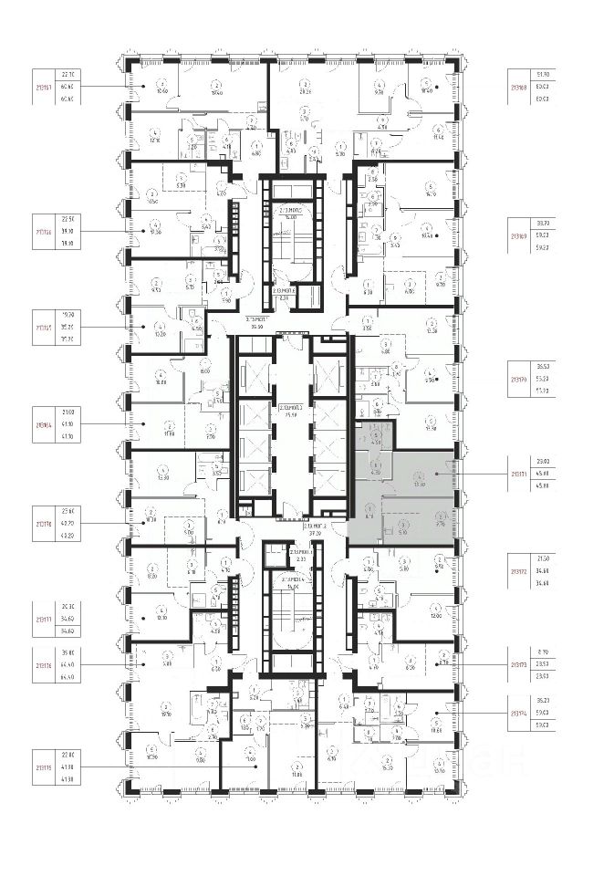 В ЖК Сет продается 1-комнатная квартира площадью 45.50 м², расположенная в корпусе 2, на 13 этаже 59 этажного дома.