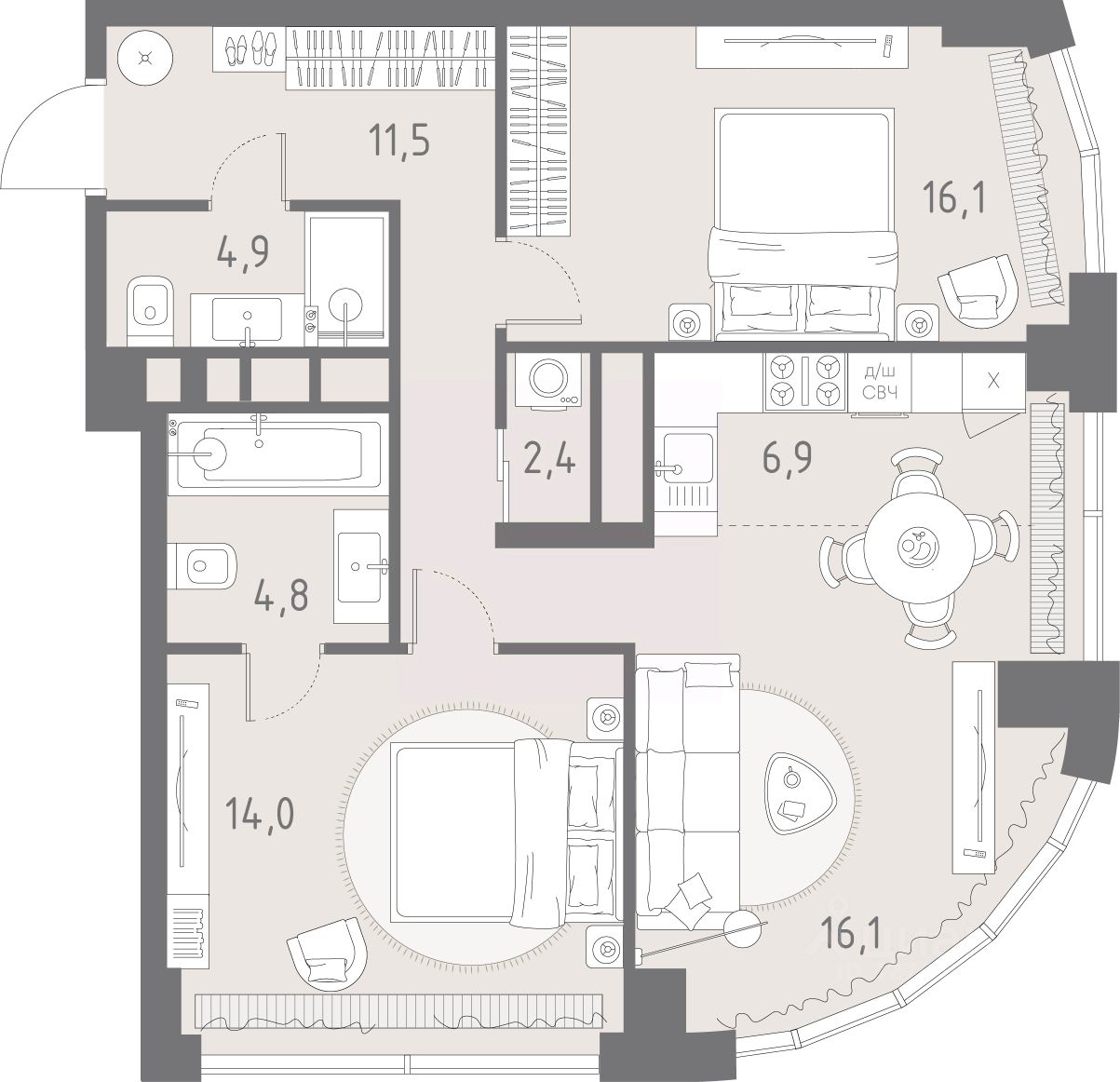 Продуманная европланировка, которую легко зонировать под ваши запросы. Потолки от 3,1 м.