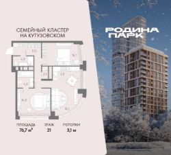 В жилом кластере Родина Парк рядом с природным заказником Долина реки Сетунь продаётся 3-комнатная квартира.