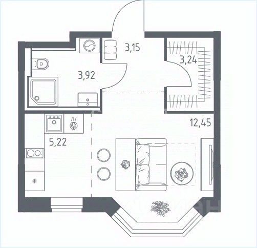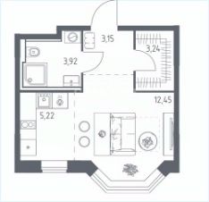 Арт. 132389185 Продается Студия в ЖК "Квартал Домашний" Студия расположена на 7 этаже 30-этажного жилого дома. Дом сдан!!! Уютная светлая квартира с отличным видом из окна. Комната 12.5 м2, кухня -ниша 5.22 м2 , прихожая 3.15 м2, гардероб 3.24, санузел совмещенный 3.9 м2 .
