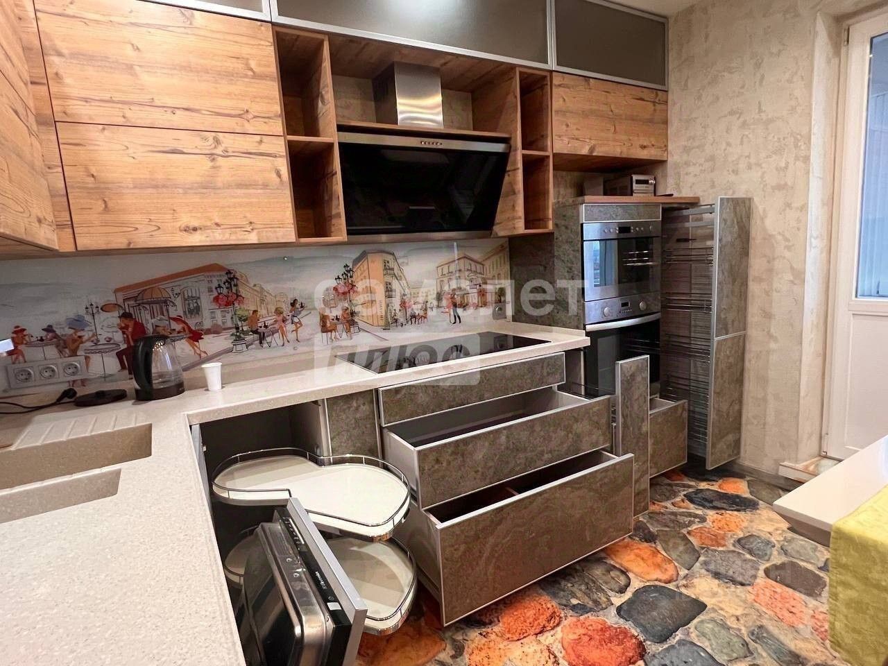 При ремонте электро-проводка выполнена ГОСТовскими негорючими проводами NYМ, сантехника разведена медью. По завершению ремонта установили кухню на заказ, где размеры подгонялись до миллиметров!!! Нижние фасады отделаны каменным шпоном. Отличная мебель, которая идеально подходит для продуманного антуража