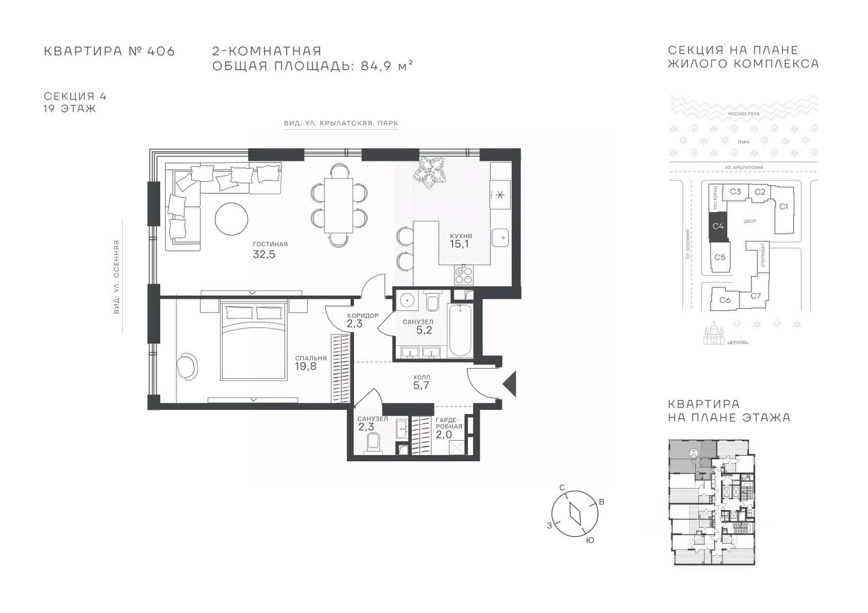 Продается 2-к квартира площадью 84.9 кв.м. на 19-м этаже в ЖК "Клубный квартал Крылатская 33". Прямая продажа от застройщика!