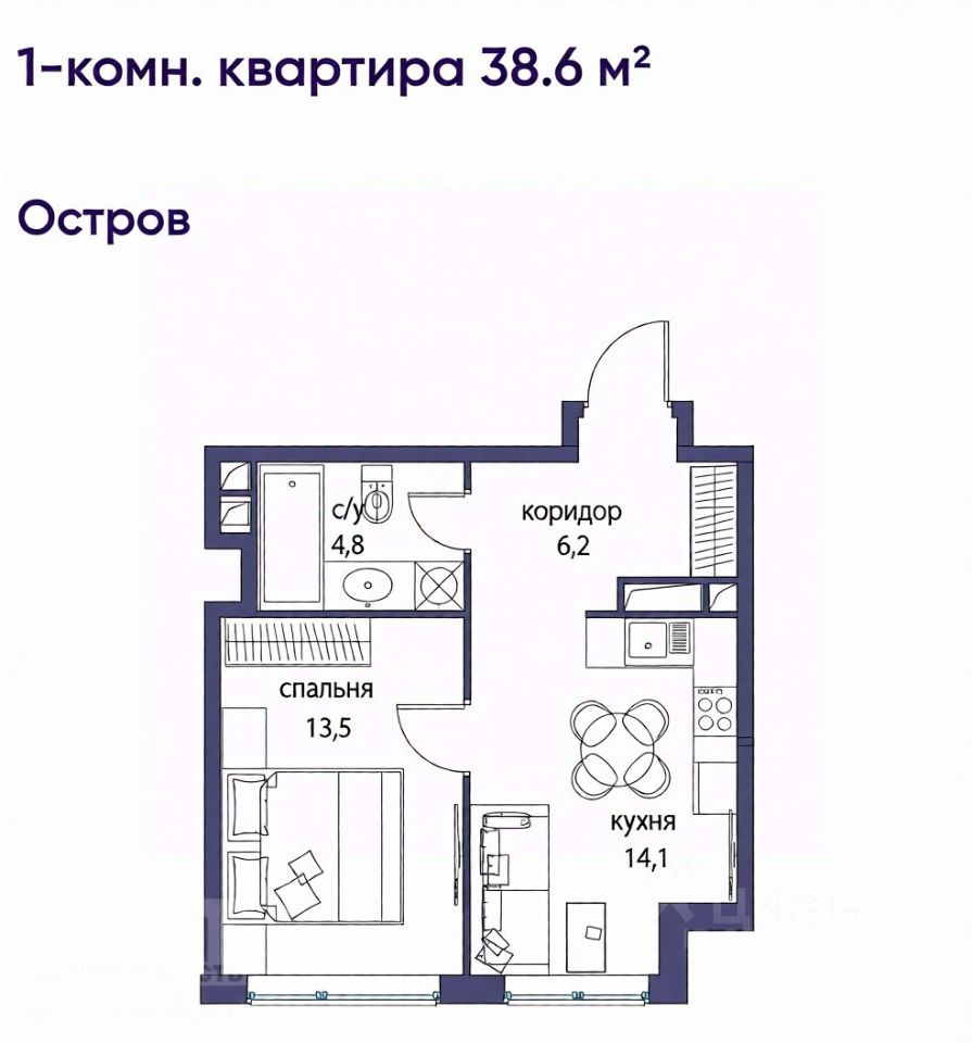 Лот: 1140968 Предлагается к продаже в ЖК "Остров" светлая, уютная однокомнатная квартира ,в седьмом корпусе, ключи получены