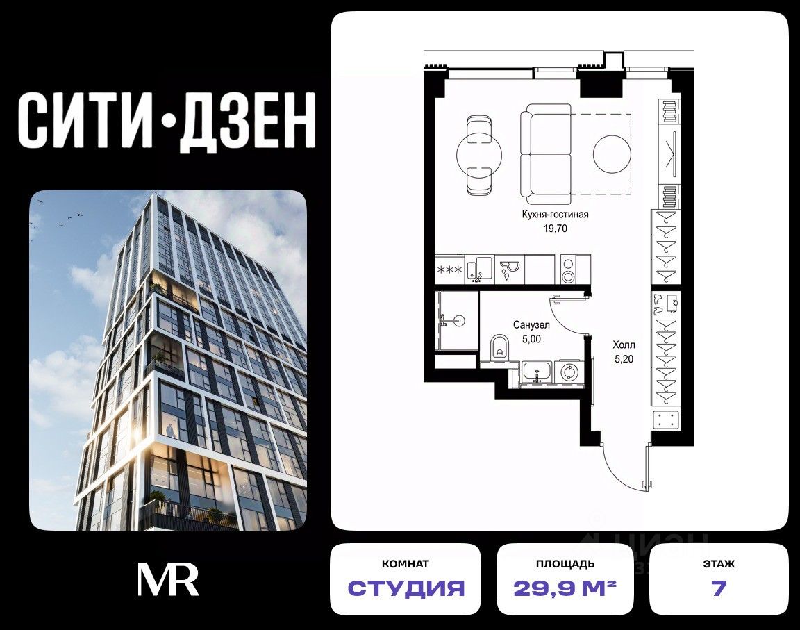 Продается студия от застройщика в жилом мультиквартале СИТИДЗЕН на 7-м этаже в корпусе #2. Общая площадь лота составляет 29.90 м²