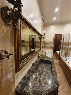 В квартире сделан стильный дизайнерский ремонт. Просторные комнаты и большая кухня позволяют комфортно разместиться всей семье. Два совмещенных санузла, оформленных с учетом современных тенденций, обеспечат удобство и уют. Встроенная мебель и техника остаются новым владельцам, поэтому можно сразу заехать и жить. При отделке были применены только качественные натуральные материалы, каменные столешницы и подоконники, сантехника бронза и стекло, паркет из красного дерева Одум Амарант. Вся техника - Electrolux, ванна - Jacob Delafon. Окна деревянные, панорамное остекление - крылатый алюминий, квартира тихая - города не слышно даже с открытыми окнами. Кондиционеры, подогрева, бойлеры горячего водоснабжения на летний период, а также фильтры питьевой воды - предусмотрены