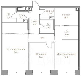 Представляем квартиру в клубном доме Гарден 3 с 2 спальнями площадью 95,7 м2 на 12 этаже.