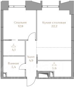 Представляем квартиру в клубном доме Хайлайн 3 с 1 спальней площадью 55 м² на 5 этаже.
