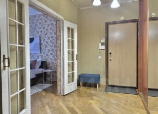 Квартира отлично подойдет тем, кто ищет просторное жильё с высокими потолками в кирпичном доме рядом с метро, в зелёном и развитом районе Москвы.