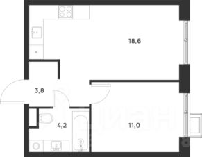 Общая площадь: 37,6 кв.м., жилая: 23 кв.м., площадь кухни-гостиной: 18,6 кв.м., высота потолков: 3 м., окна выходят на улицу.