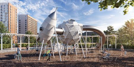 Дворы-парки закрыты от машин и посторонних. На территории — прогулочный маршрут вдоль реки Незнайка и набережная с шезлонгами и качелями для отдыха. Также здесь появится плейхаб "Незнайка на Луне", площадь для мероприятий с сухим фонтаном, летним кинотеатром и кафе.