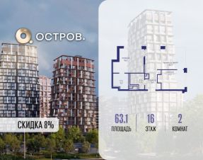 Скидка до 8% действует до 31.03.2026 г. при 100% оплате и не субсидированной ипотеке. Продаётся 2-комн. квартира от застройщика: общая площадь 63.10 м², жилая 27.50 м², кухня 22.40 м², 16-й этаж, жилой квартал "Остров 14", корпус 1 (секция 2). Срок сдачи: 2 квартал 2029 года. 2 совмещенных санузла. Остров.14 ДОХОДНЫЙ ДОМ - ЧАСТЬ ПРОЕКТА "ОСТРОВ", В 10 МИНУТАХ ОТ МОСКВА-СИТИ, В 15 МИНУТАХ ЕЗДЫ ОТ САДОВОГО КОЛЬЦА. Квартиры для сдачи в аренду Инвестиционный продукт для получения постоянного дохода Квартиры с отделкой и мебелью, и с управлением "под ключ" Постоянный доход для инвесторов, отельный сервис для арендаторов Востребованные для аренды планировки: студии, 1- и 2-комнатные квартиры 28-64 м2 Полная комплектация квартир: отделка, мебель, бытовая техника, кондиционеры Постоянный поток арендаторов - 10 минут от Москва-Сити, 5 минут от метро "Мневники", самодостаточная инфраструктура в квартале и собственная клубная инфраструктура в доме, спортивный, рекреационный и деловой кластеры на территории ОСТРОВА