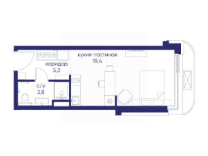 Продаётся квартира от застройщика: общая площадь 28.50 м², жилая 14.40 м², кухня 5.00 м², 2-й этаж, жилой квартал "Остров 14", корпус 1 (секция 2). Срок сдачи: 2 квартал 2029 года.