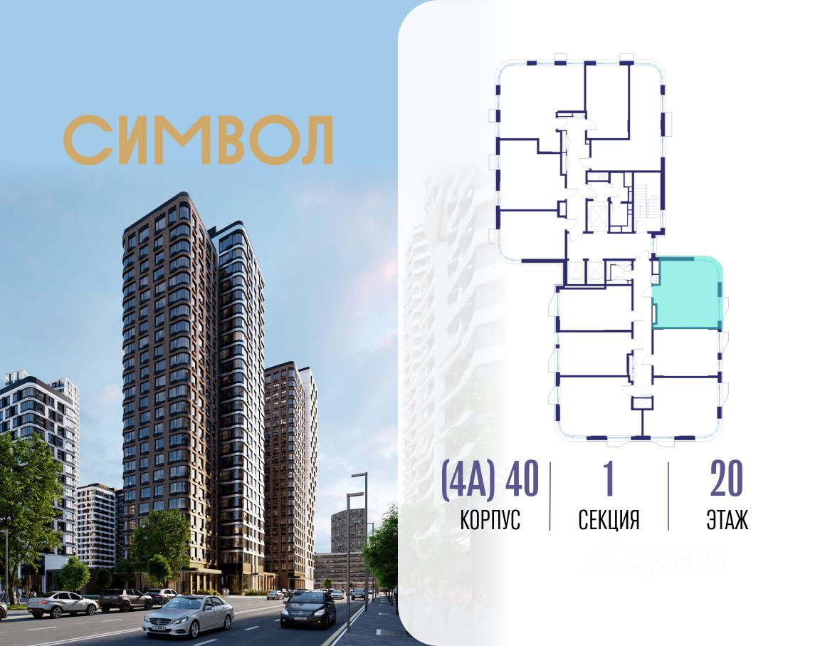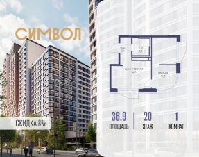 Продается 1-комнатная квартира от застройщика: общая площадь 36.90 м², жилая 14.10 м², кухня 15.60 м², 20-й этаж, жилой квартал "Гордость", корпус 40 (секция 1). Срок сдачи: 2 квартал 2029 года.