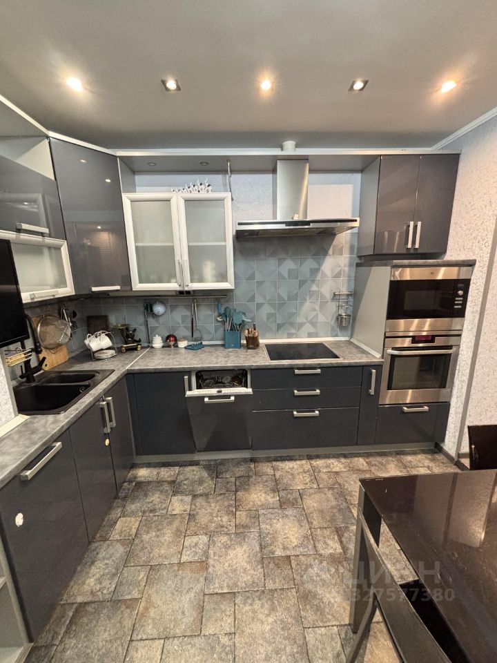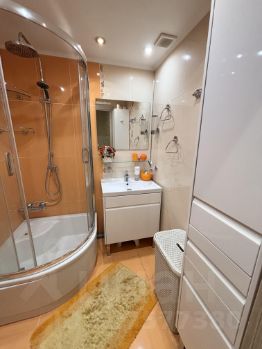 На кухне установлена встроенная немецкая и швейцарская техника AEG, Siemens, Liebherr, есть посудомоечная машина, подогрев пола. Большое количество шкафов, часть кухонного гарнитура продолжается на балконе, что позволяет более рационально использовать пространство.