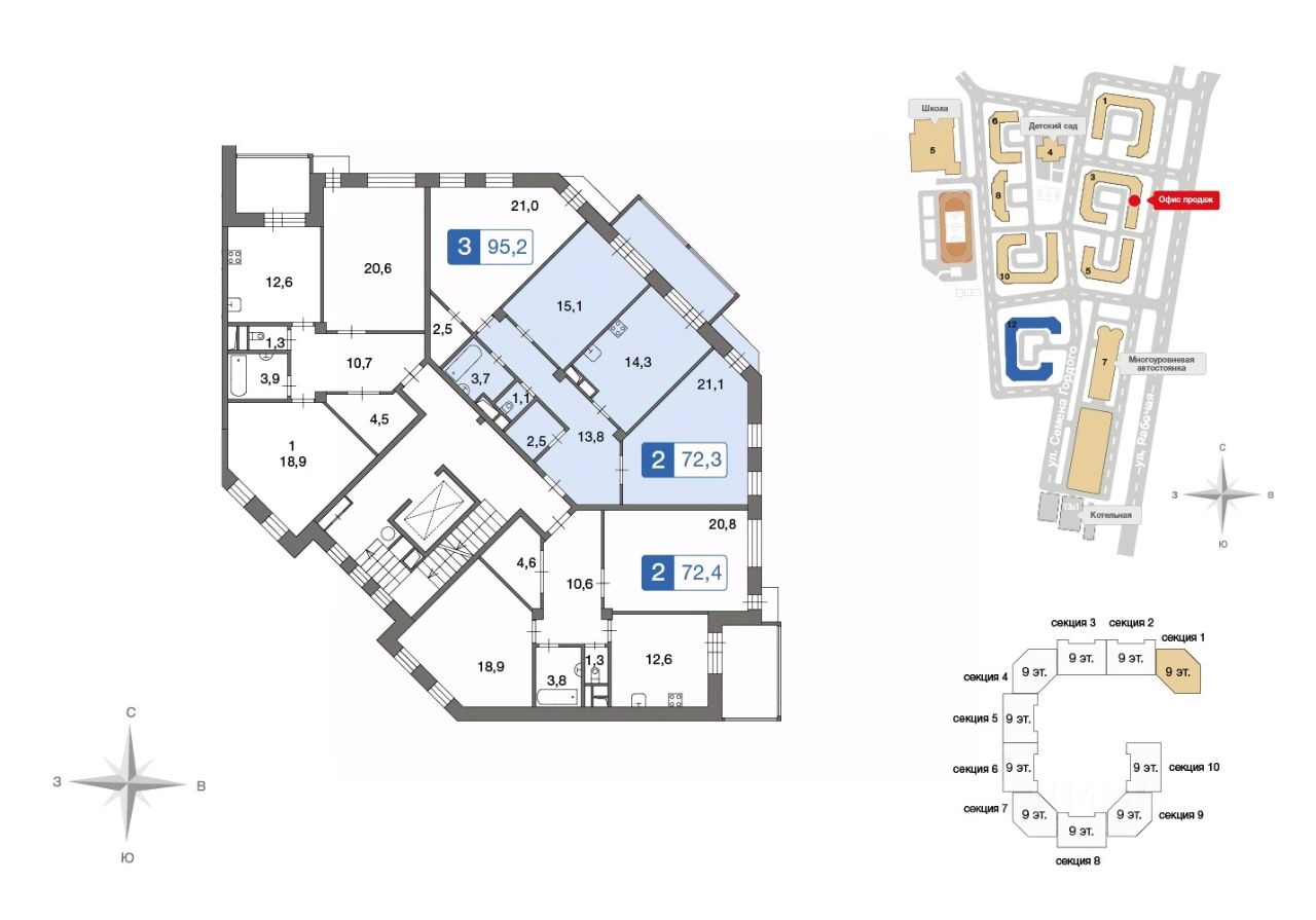 Продаётся 2-комнатная квартира в сданном доме (Семёна Гордого, 12), срок сдачи: IV-кв. 2018, общей площадью 72.5 кв.м., на 8 этаже. Расположение, транспортная доступность