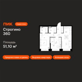 Продаётся 2-комн. квартира площадью 51,1 кв.м на 17 этаже 30 этажного дома (Корпус 1.2, Секция 1) проекта ПИК Строгино 360. Светлый просторный подъезд на уровне земли, функциональная планировка, большие окна, предчистовая отделка.