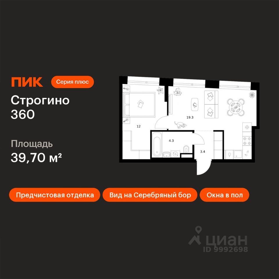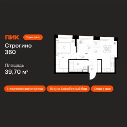 Продаётся 1-комн. квартира площадью 39,7 кв.м на 26 этаже 30 этажного дома (Корпус 1.2, Секция 1) проекта ПИК Строгино 360. Светлый просторный подъезд на уровне земли, функциональная планировка, большие окна, предчистовая отделка.