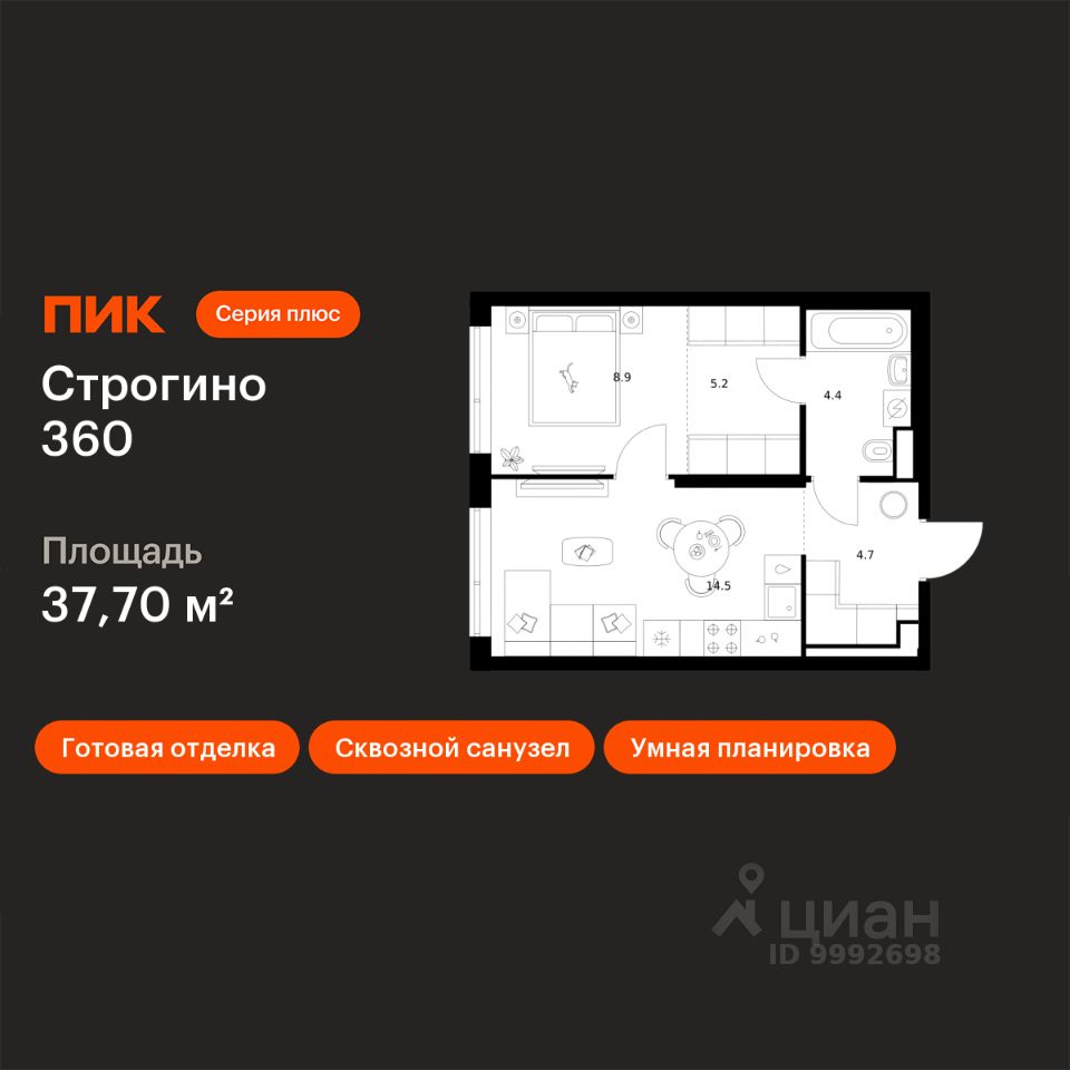 Продаётся 1-комн. квартира площадью 37,7 кв.м на 13 этаже 30 этажного дома (Корпус 1.2, Секция 1) проекта ПИК Строгино 360. Светлый просторный подъезд на уровне земли, функциональная планировка, большие окна, c отделкой.